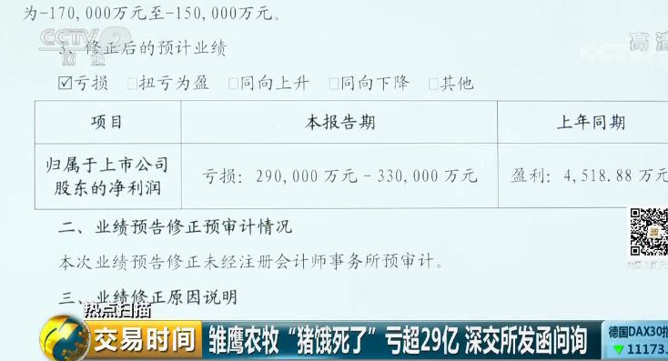 中山大学金融投资研究中心研究员 郑云鹰:三季度已经确认年报会亏损,既然亏损的幅度比较大,不如干脆把过去的一些包袱彻底处理掉,然后来一个财务大洗澡,以后就可以轻装上阵。所以,雏鹰农牧应该存在财务大清洗、大洗澡的嫌疑。
