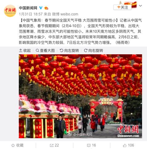 春节期间天气情况又如何呢?