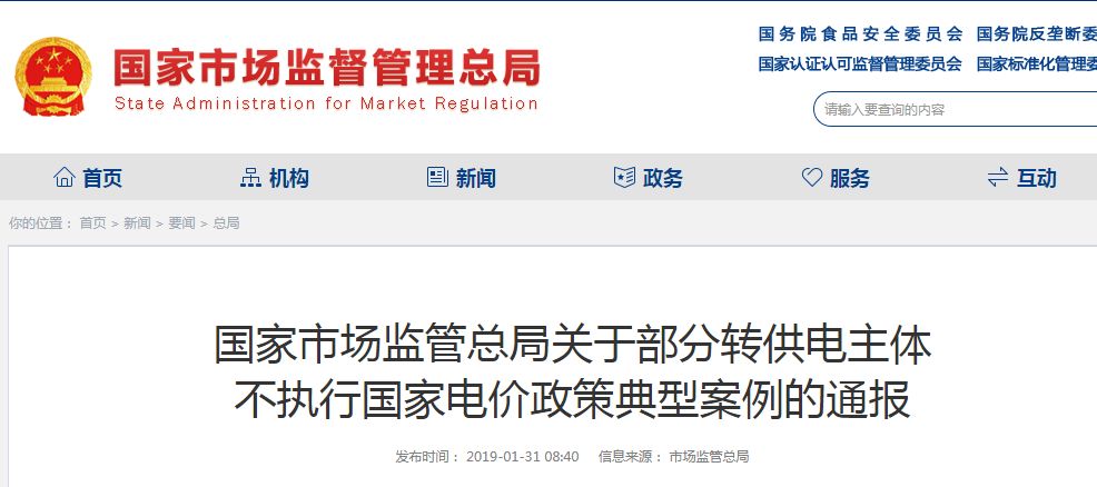 2018年9月以来,国家市场监管总局就组织各地对转供电环节电价进行了重点检查。但直至2019年1月31日市场监管总局发布通报后,北京西铁营万达仍未整改。
