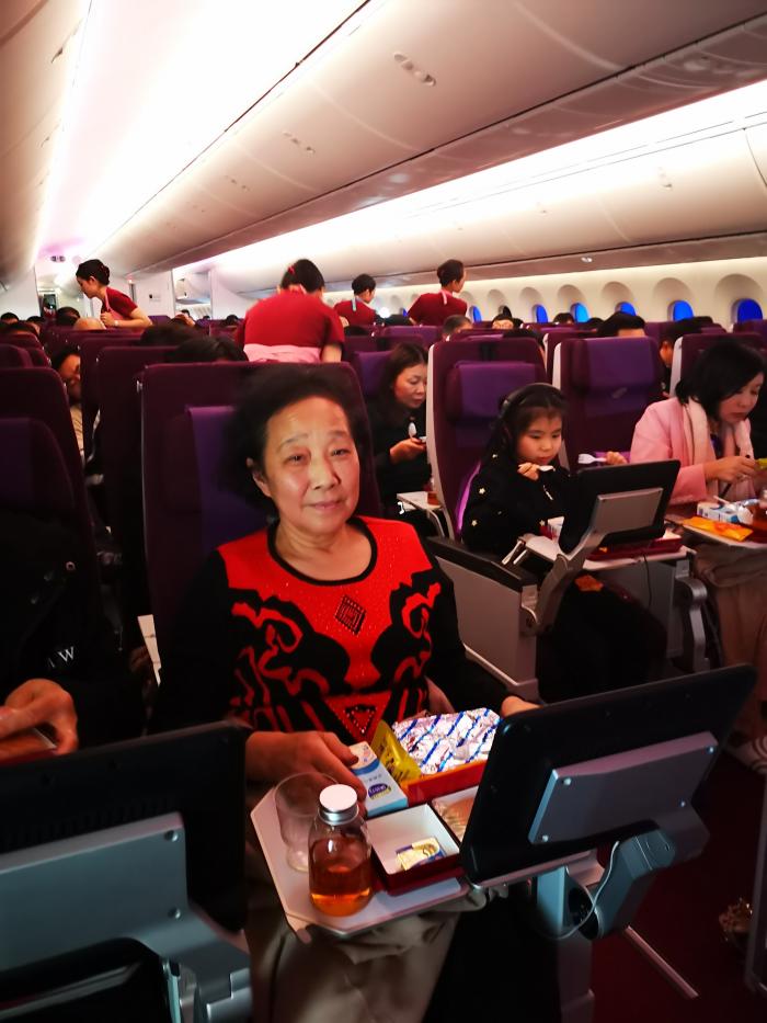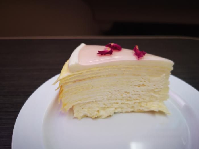 “还挺惊喜的,以前在航班上没见过这种饮料”,跟随一家人去新加坡过年的张阿姨告诉21世纪经济报道记者,自己此前并没喝过喜茶,味道还挺不错,杯子也很可爱,让她感觉这趟首班机坐得值了。而商务舱旅客除了能喝到喜茶,还多出了一块可爱精致的Lady M蛋糕。
