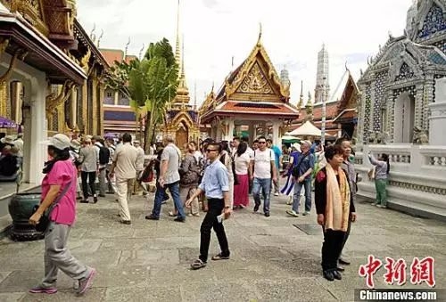 资料图片:中国游客在泰国大皇宫内游览,感受泰国佛教文化。中新社记者 陈燕 摄