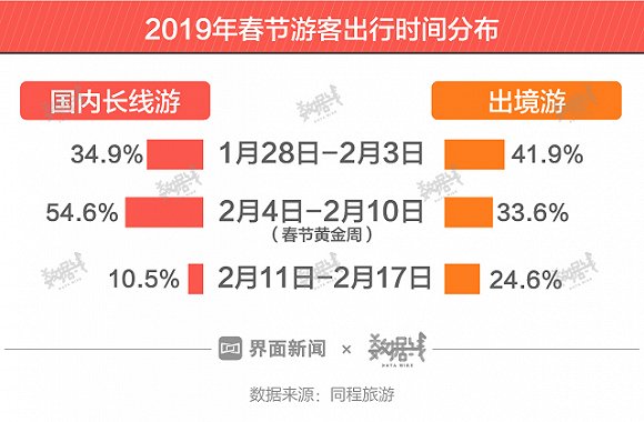但就在假期还未正式开始前,已经有超过3成游客即将结束他们的春节出行。同程旅游数据显示,春节错峰出游明显,34.9%的国内长线游和41.9%的出境游都发生在春节黄金周前一周。