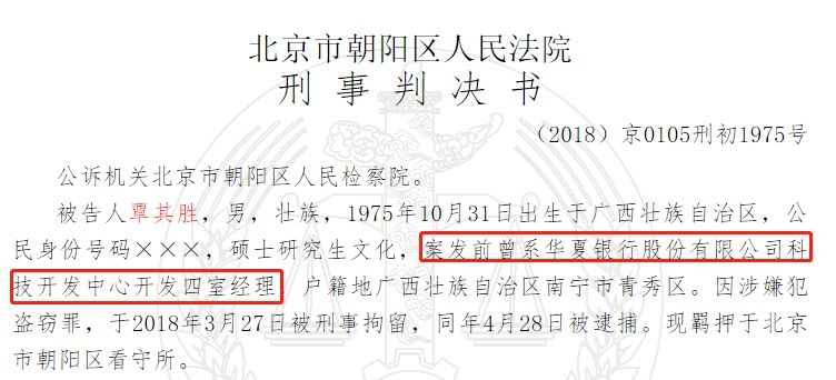据华夏银行首席信息官王某表示,单位发现问题后找覃其胜谈话,覃其胜谎称是在做测试,通过该程序测试是否存在漏洞。