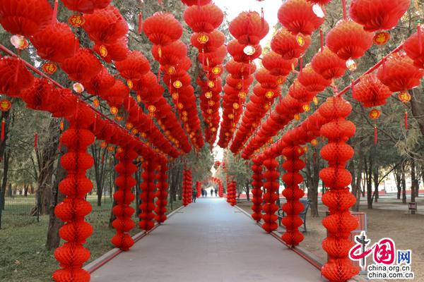 地坛公园步道两边挂满灯笼。中国网记者金慧慧摄