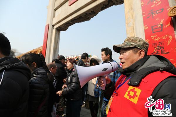 在地坛庙会现场维持秩序的蔺禄平。(资料图) 王冉摄