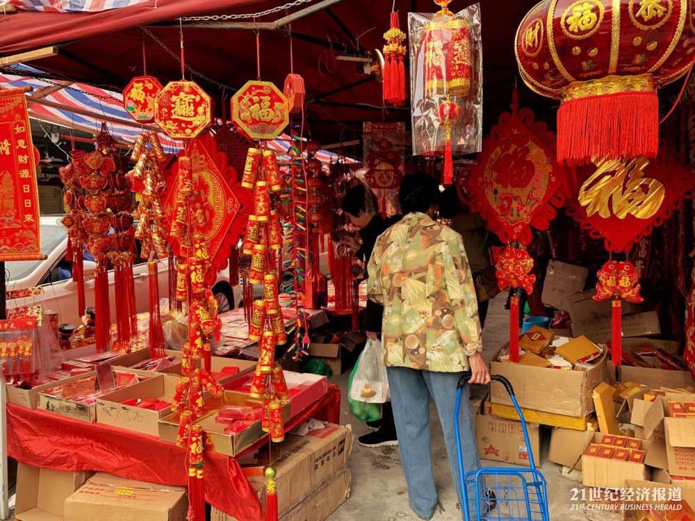 菜市场不仅仅是我们生活中买卖蔬果鱼肉的地方,菜市场里的学问与烟火气味有时候会成为一个城市的象征与特色,也是这座城市的味道。 今天已经是除夕了,小编来到汕头最大的综合市场,和你一起探访年三十菜市场的烟火味与新年味。 菜市场门口的“年货店”:灯笼、春联和“福”帖。(陈思颖 / 汕头报道)