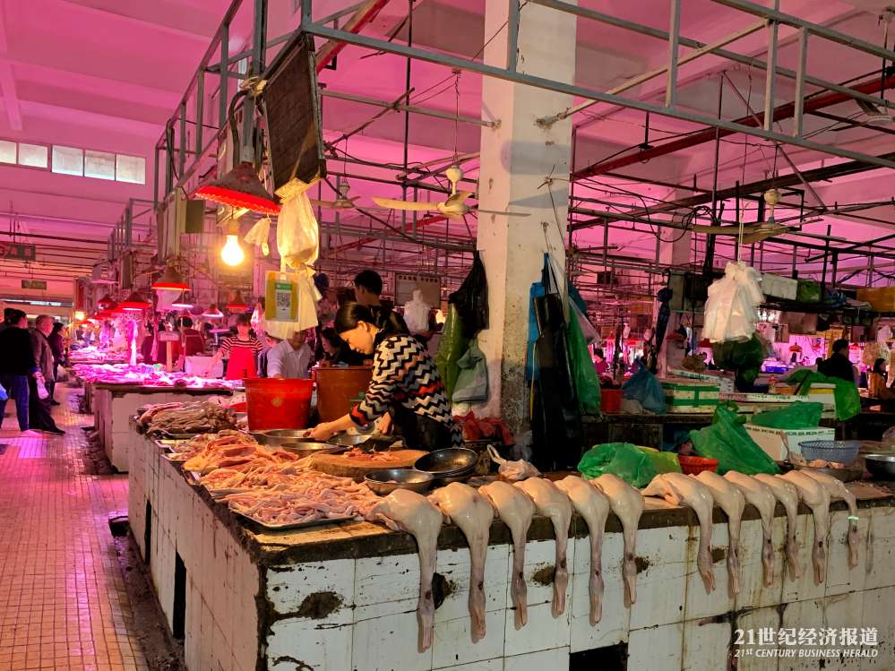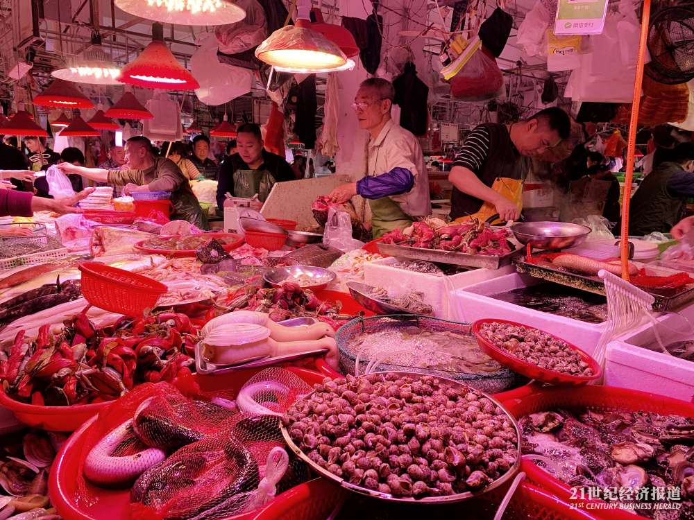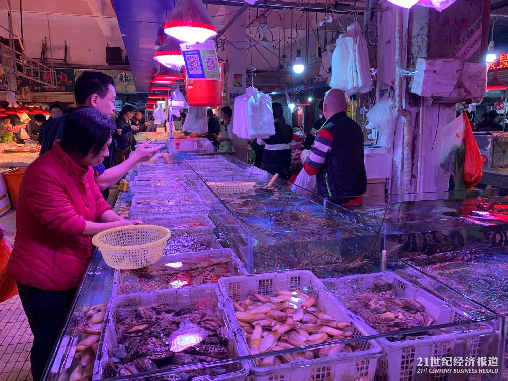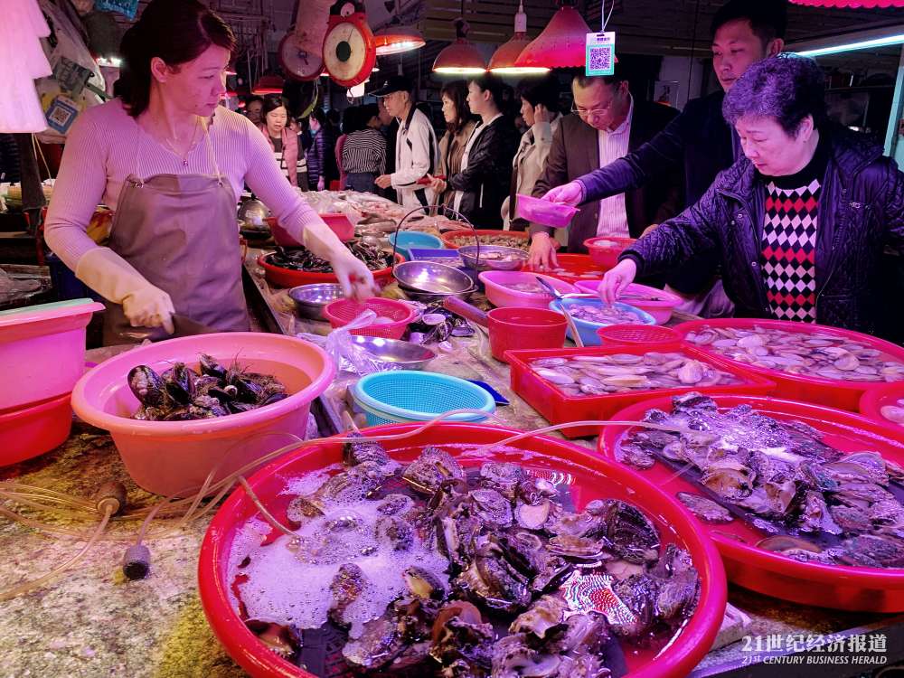 汕头是沿海城市,海鲜较多,清晨,海鲜虾鱼档口准备就绪,采买的人群也渐渐多了起来。