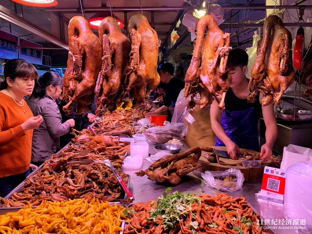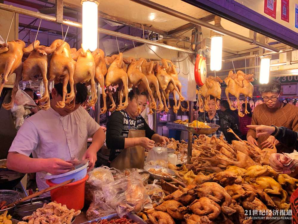 盐焗鸡档口,这些通常在早上就可以全部卖完,有许多是熟客早已预定的。