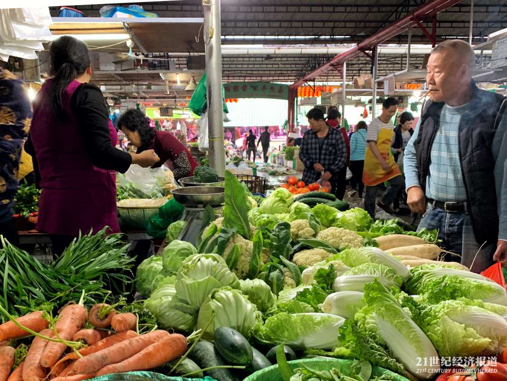 清晨的青菜档,今年是个暖年(气温15-25℃),青菜价格较往年便宜。