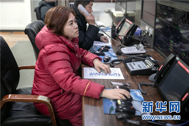 图为:杨媛媛正在联控作业。新华网发刘亚龙摄