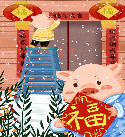 大门板上的“福”字必须正贴,因为这是一家人进出的地方,象征“迎福”和“纳福”之意。