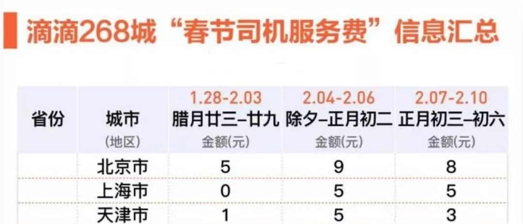 在春节期间,乘客呼叫快车(含拼车)、优享、优步、专车时,需额外支付司机春节服务费,具体额度因地因时不同,最低每单加1元,最高9元。