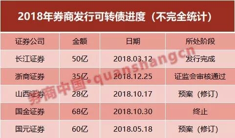 也有券商通过发行可转债来增加公司净资本。据券商中国记者不完全统计,虽然去年以来至少有5家券商发布了发行可转债预案,但只有一单完成了可转债发行。