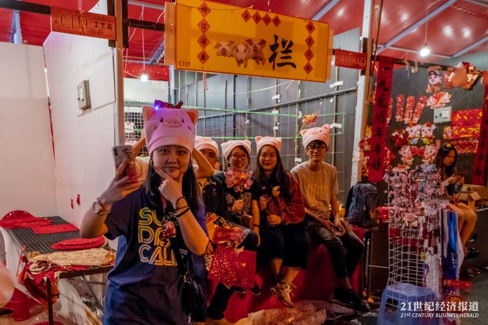 和几位朋友合作在花市摆摊的学生们在最后时刻合影留念。