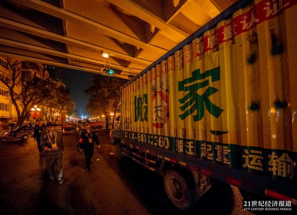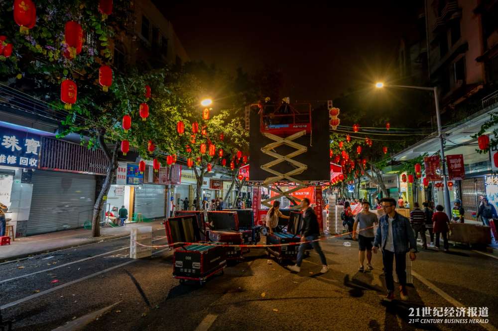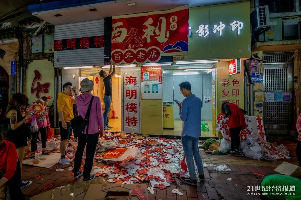 电力工人已经进场,商家离场后随即开启拆卸工作。