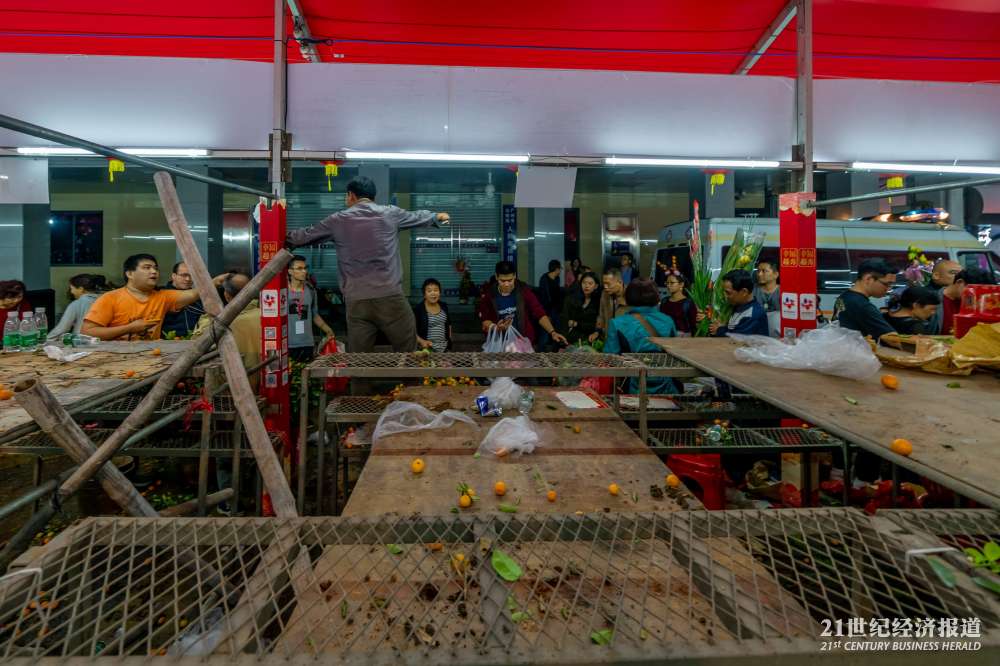 在河对岸的西湖路花市,原本摆满年桔的货架上全部清空,剩下几盆卖相不太好的,顾客还会抓住这点跟店主讨价还价。