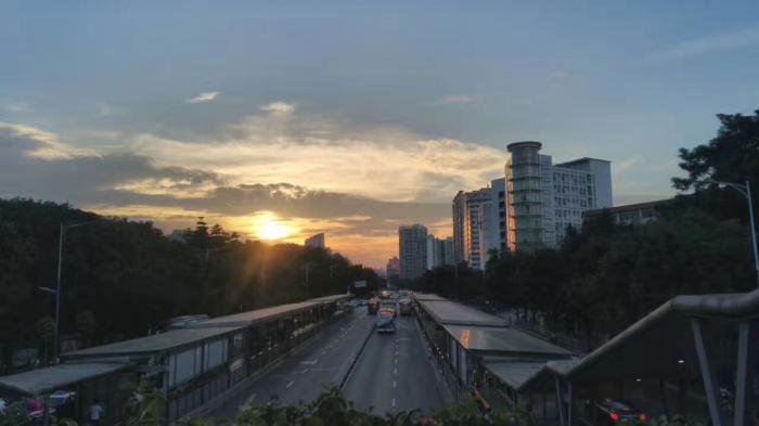 (大年三十,广州天河,落日余晖,车流较往日明显减少)