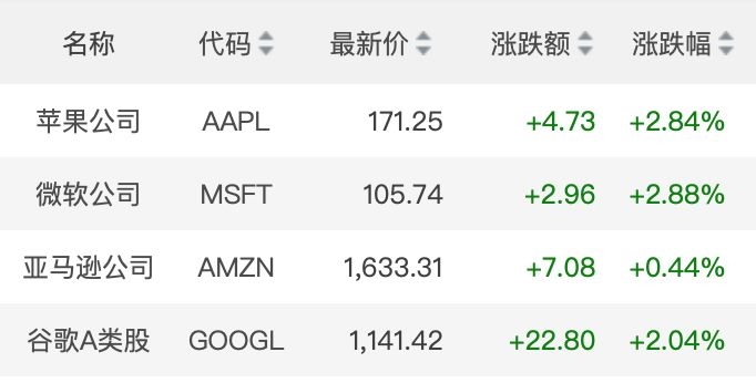盘面上看,科技股涨幅居前,脸书、苹果、微软等涨幅均超过2%。苹果盘中涨逾3%,市值一度重新登顶美股。