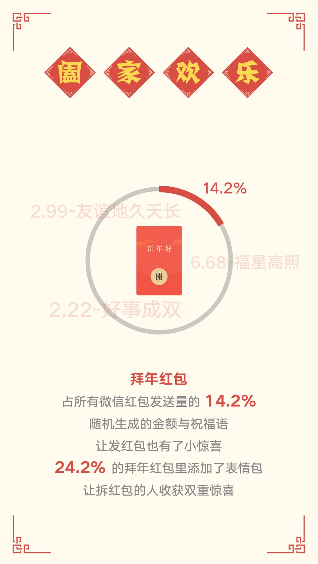 除夕过了,我们总结了一些数据,关键词有三个:心意、祝福、微信红包。