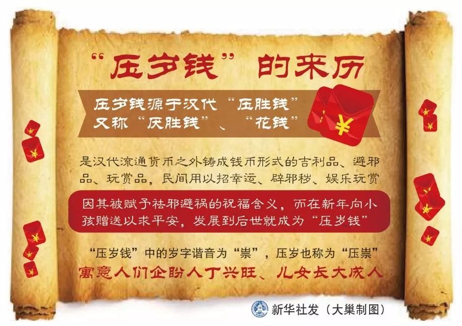 在不少地方,压岁钱节节攀涨,已上升到几百元或上千元,表面是给晚辈压岁钱,实际是大人之间的“礼尚往来”,沦为成人们逢年过节的“面子工程”,已经背离了压岁钱的初衷。
