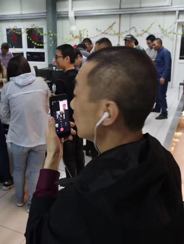 饭堂内外随处可见一些员工正通过微信视频连线,与相距两万里之遥的祖国亲人互致新春祝福。有的向父母拜年,有的向妻子问候,还有的面对女儿的呼喊泪湿眼角。