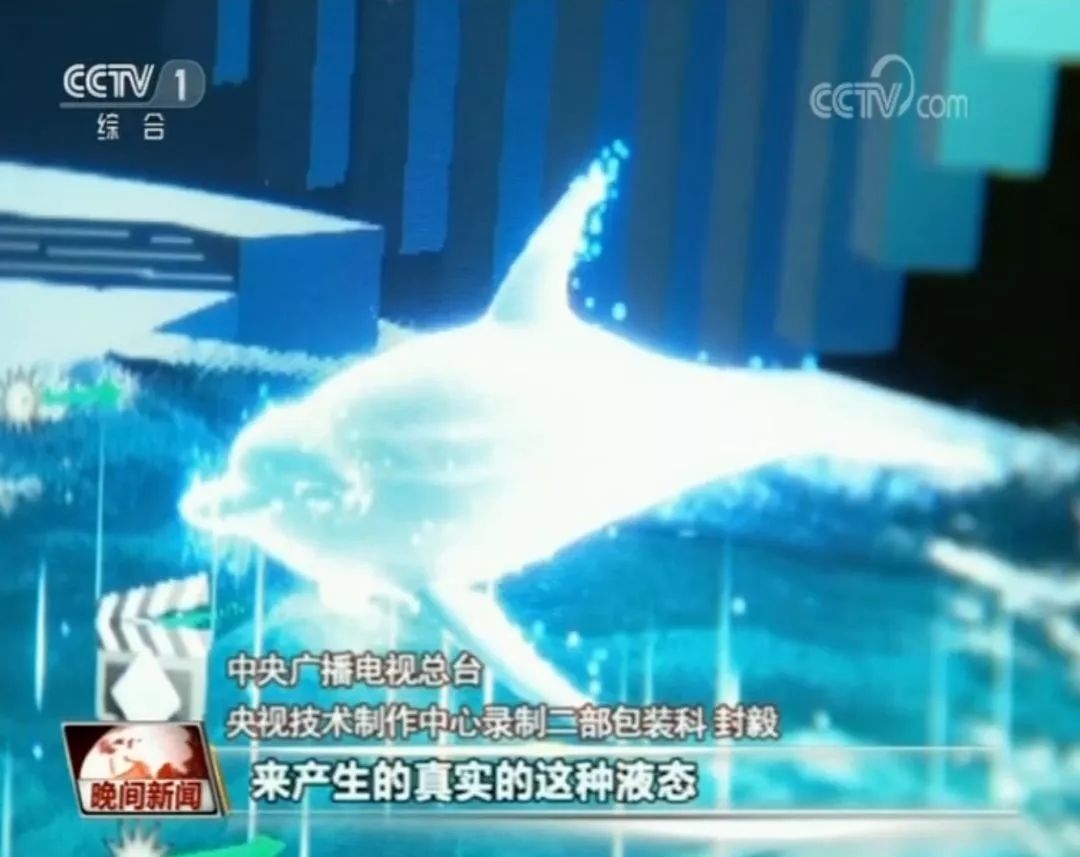 “底下的水和海豚实际上是AR虚拟部分的内容,通过编写蓝图实现物理运算,产生真实的液态水流效果。所以它是非常真实的,包括水上的这种反射都是动态的。”中央广播电视总台工作人员说。