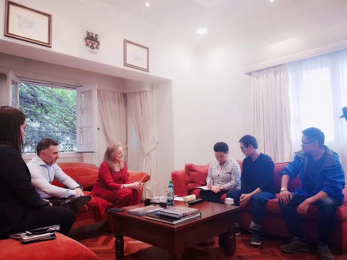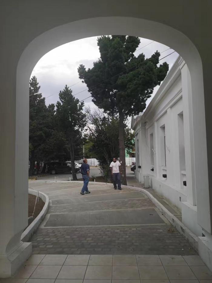 在中国能建葛洲坝集团孔拉水电项目常务副经理袁志雄的陪同下,从孔拉LB水电站营地出发,驱车沿9号省道及3号国家公路,前往圣克鲁斯省省府所在地——里奥加耶格斯市(Rio Gallegos),采访省长Alicia Kirchner。因为省政府办公所在地正在装修,采访被安排在一街之隔的省长官邸进行,圣克鲁斯省生产、商业及产业部长Leonardo Alvarez与省长助理Maria参加。