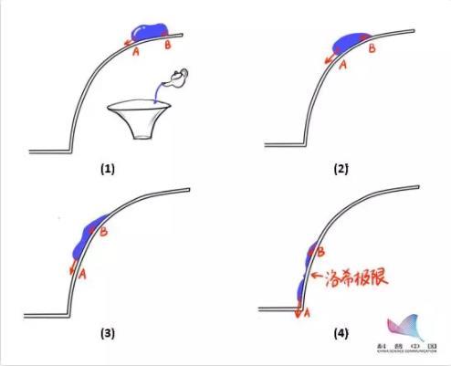 我们在杯壁顶部倒一些水,让它在重力作用下向着杯底滑落。越靠近杯底,水滴会越拉越长,最后被拉扯到了撕裂的极限。这个极限就可以被认为是这个茶杯对水滴的“洛希极限”。