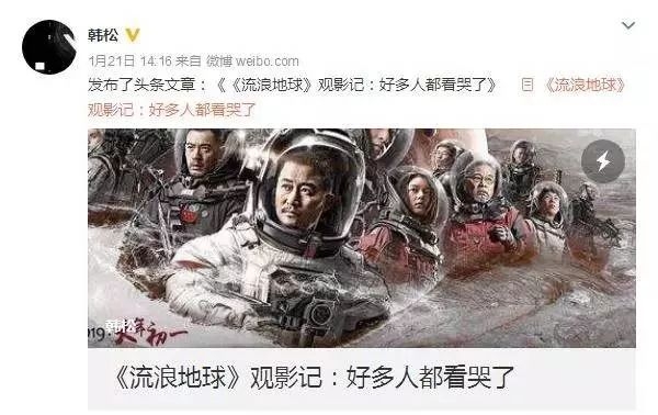 被誉为当代中国科幻“四大天王”之一的作家韩松撰文:“好多人都看哭了”。