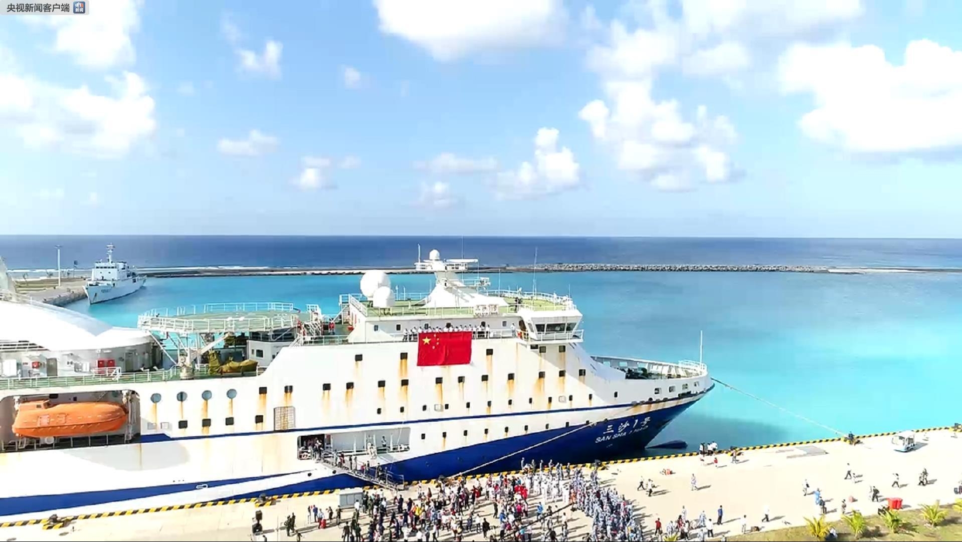 伴随着海面传来的汽笛长鸣声,人们从四面八方赶往码头,翘首迎接“三沙1号”的到来。