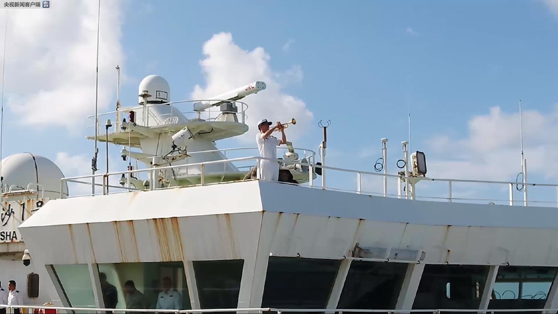 这时,甲板上突然响起了一阵温暖的旋律,人们纷纷抬起头,寻找声音的来源。原来,甲板上、陆地上,91892部队军乐队帅气潇洒的小哥哥、英姿飒爽的小姐姐们,正用手中的小号、长笛、小军鼓、镲等十余种乐器共同奏响《我和我的祖国》优美而富有歌唱性的旋律。军乐队激动人心的演奏,回荡在碧海蓝天之间,唤醒三沙静谧的清晨,吸引现场人群纷纷停下脚步,驻足观看。