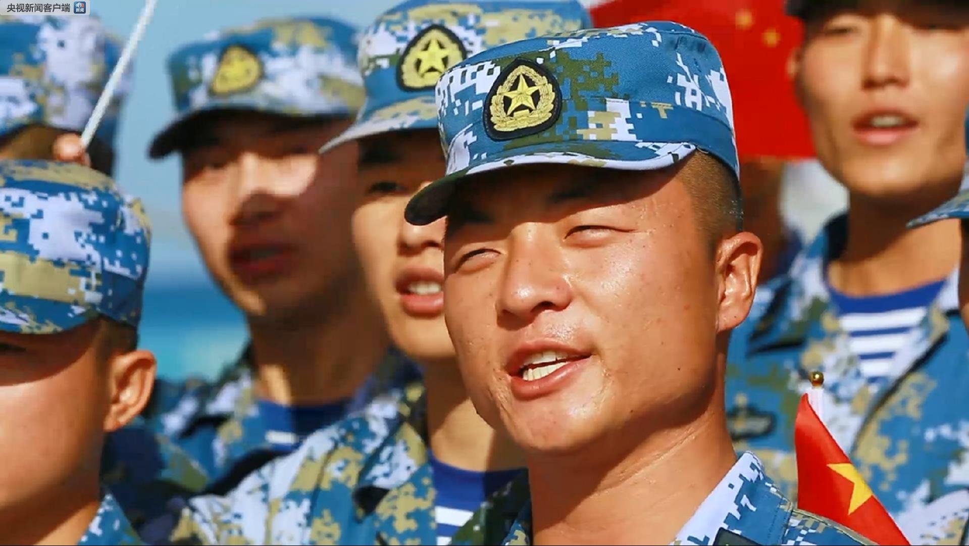 “我和我的祖国,一刻也不能分割。无论我走到哪里,都流出一首赞歌。”三沙海军战士李宗霖领唱歌曲。接着,三沙驻岛战士从远处走来,齐声高歌,意气风发、豪情满怀地歌唱,表达了对祖国的眷眷深情。