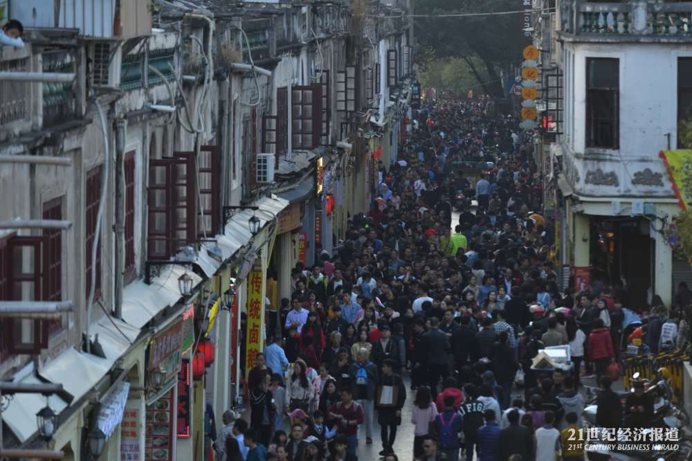 (21世纪经济报道 陈逸航)2月8日(正月初四),潮州古城下水门街拥挤的游客。当地旧时有俗语“热过下水门”,形容就是这种贸易、交通和生活交织于一起的景象。春节期间,当地拥堵指数再度高居全国城市榜首。假期前3天全市接待游客达72.48万人次,景区景点接待游客达115.41万人次,旅游总收入超亿元。