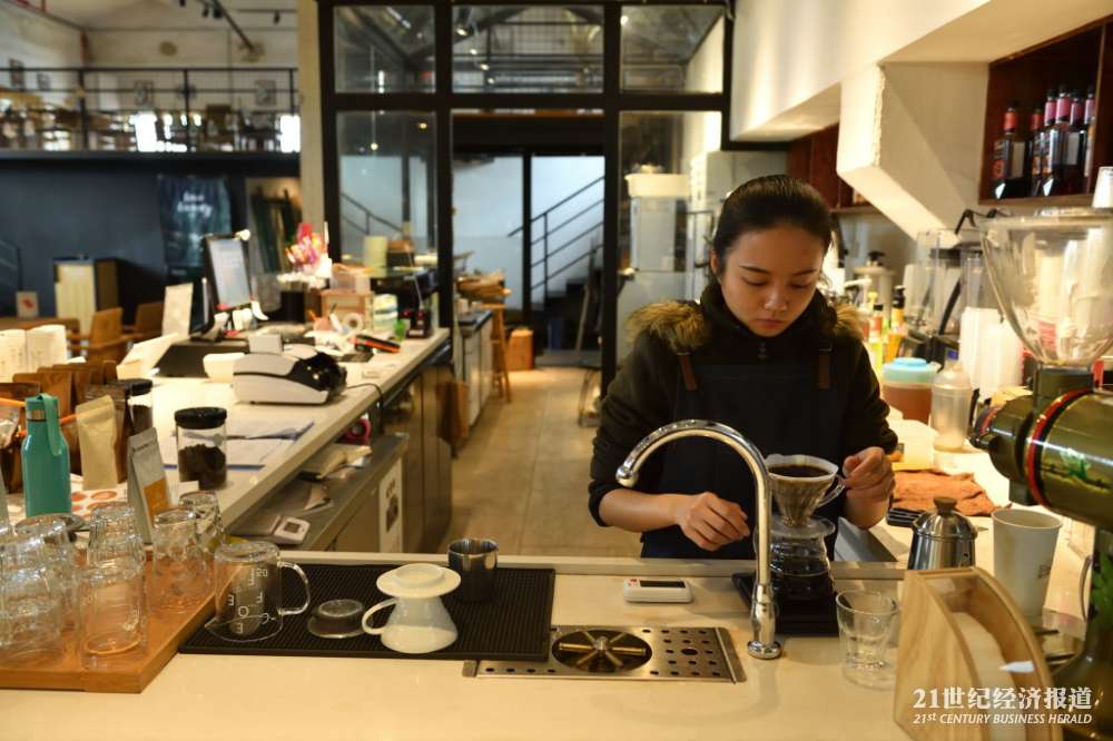 2月3日(腊月廿九),时间轴书店咖啡吧,大学三年级的林欢正在为客人准备咖啡。在广州商学院修读国际经济与贸易的她,一有时间便会从事兼职工作。当前的时薪为10元。“每次几乎都能学到东西,无论是技能还是一些人生的经验教训,还能拓展自己的社交圈。最重要是学会独立,自己想要什么就自己去赚钱,自己去实现自己所追求的东西,比起跟父母伸手要钱更有满足感。”她说。