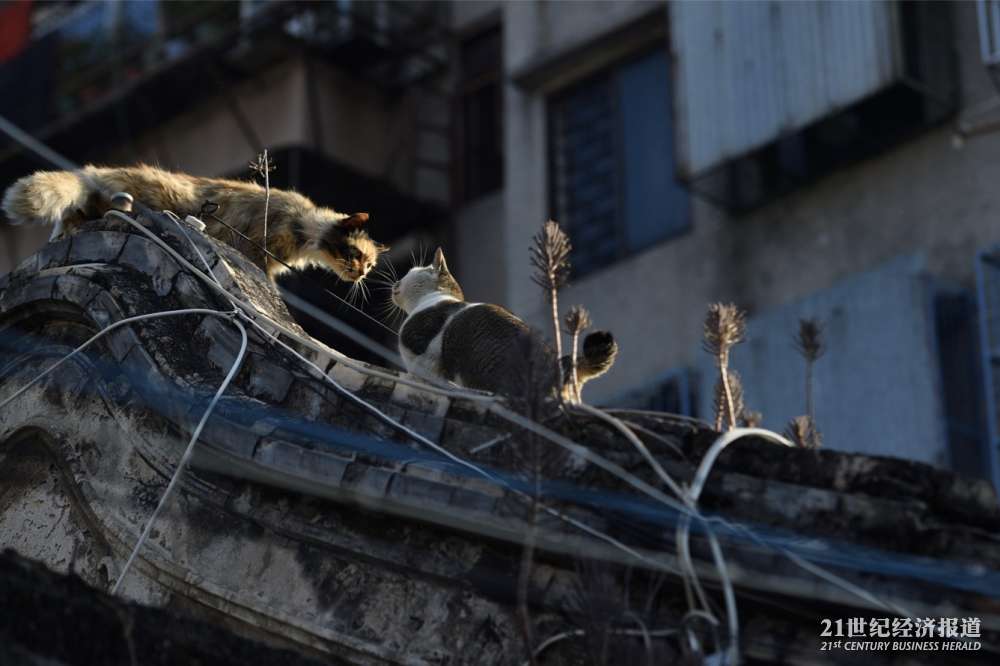 1月30日(腊月廿五),宰辅巷。传统“金星”厝角头上,一只短毛猫不请自来,在长毛猫的凝视中退却、离开。如果凝视无法凑效,地盘猫通常会将行动升级:发出嘶哄声、咆哮或是展开激烈的攻击。