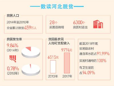 党的十八大以来,河北省认真贯彻落实习近平总书记关于扶贫工作的重要论述,切实提高政治站位,持续不懈发力,加快补齐贫困地区这个短板。牢牢坚持精准二字,实施动态管理,既要说清楚有多少人脱了贫,又要说清楚怎么脱的贫。坚持志智双扶,因地制宜培育2000个贫困人口参与度高的特色产业基地,帮助有劳动能力的贫困人口实现稳定可持续脱贫。加大资源整合和政策倾斜力度,支持10个深度贫困县和206个深度贫困村实施基础设施和基本公共服务提升工程,全力以赴攻克坚中之坚、贫中之贫。夯实脱贫攻坚的组织保障,推广承德市“脱贫攻坚党旗红”经验,整顿软弱涣散村党组织,选派2.2万名干部驻村帮扶,组织32.5万名干部与贫困户结对帮扶。