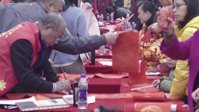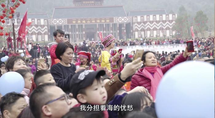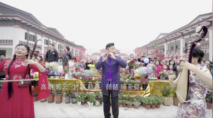 这是乳源瑶族自治县的年集,写春联、逛花街、拍全家福……热闹非凡。在三位瑶族姑娘清脆的嗓音下,一场快闪活动突然拉开序幕,逛年集的群众在惊喜中驻足、寻找、观看。