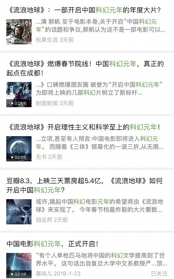 因为《三体》在国际上所收获的众多奖项,自然使得刘慈欣成为了中国科幻小说最知名的代表人物,中国电影要在科幻类型上取得突破,改编他的小说自然是水到渠成的选择,起码天然上刘慈欣的书迷就能直接转化为电影的观众,更何况不少科幻爱好者所具有的不俗传播声量。事实上作为商业电影的《流浪地球》在宣传上走的也是这一思路,作为春节档唯一做过点映和首映的电影,其主要面向的受众基本都是资深科幻迷以及影视从业者,前者自然会为能在大银幕上看到大刘的作品而激动,后者则因为见证了“中国科幻电影的突破”而兴奋,在这种狂热的氛围下,《流浪地球》的前期口碑的确让人对“中国科幻电影”产生了些许期待。