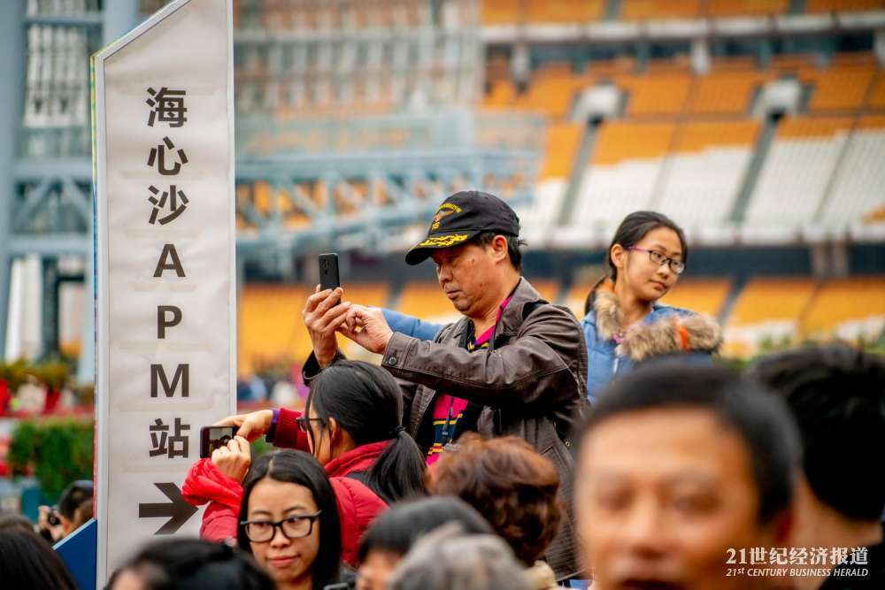 由于参观人数众多,APM线海心沙站入口已经围得水泄不通,需要限流入闸。