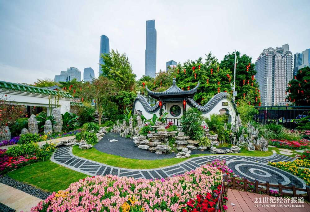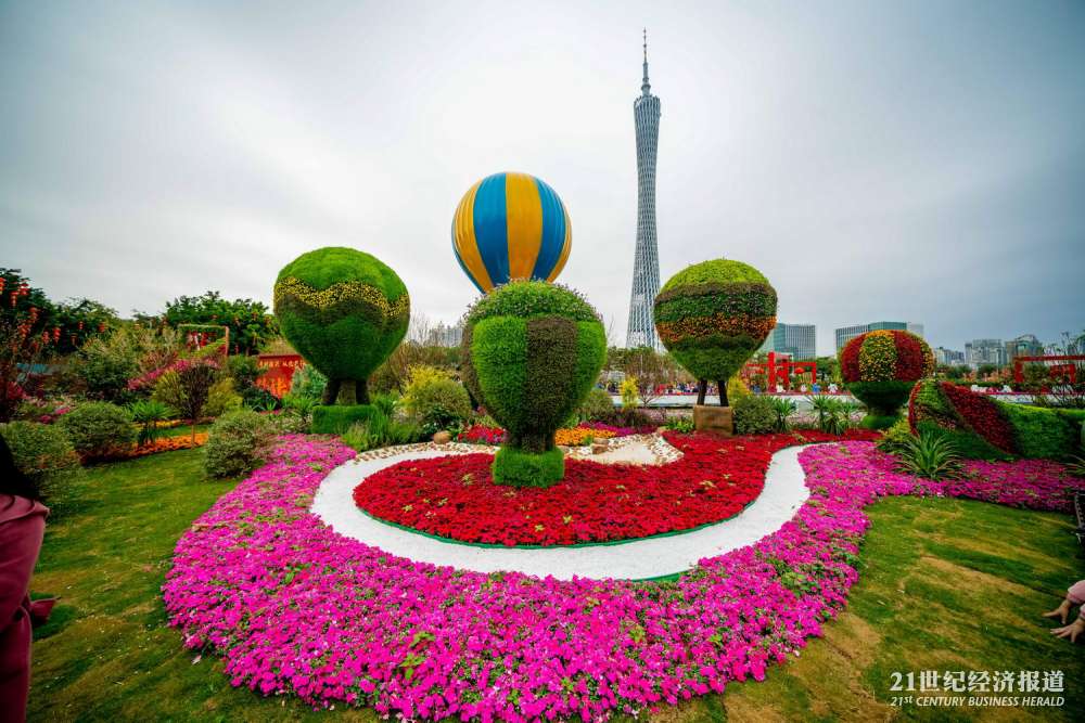 (甘俊/广州报道)南国春来早,温暖的广州春意盎然,四处百花齐放,是春节最靓丽的风景线。农历春节期间,不仅有闪亮登场的园博会,还有应接不暇的各大花展,满城花景、鲜花簇拥,而每一处花景都有它最美的角度。领衔花城新春的是海心沙的第25届广州园林博览会。本届展览会的主题为“花开广州 春暖羊城”。中轴线上的园林作品与广州市的地标“小蛮腰”完美结合,相映成趣,引得前来参观的市民纷纷拍照打卡。花城广场中轴线处摆放着巨大的插花“礼品盒”。