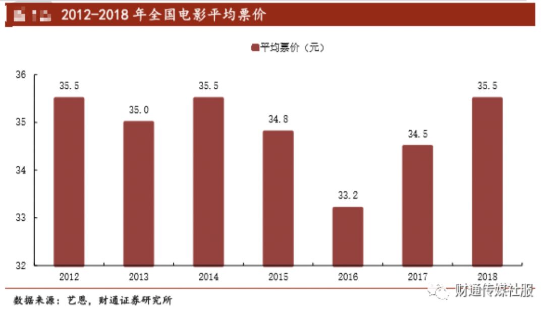 财通证券认为,含服务费的平均票价代表了消费者为每张电影票消费金额,2018年全国平均票价(含服务费)提升1.0元至35.5元/张,延续2017年平均票价增长趋势。全国平均票价普遍提升也是2018年全年票房增长的重要原因。