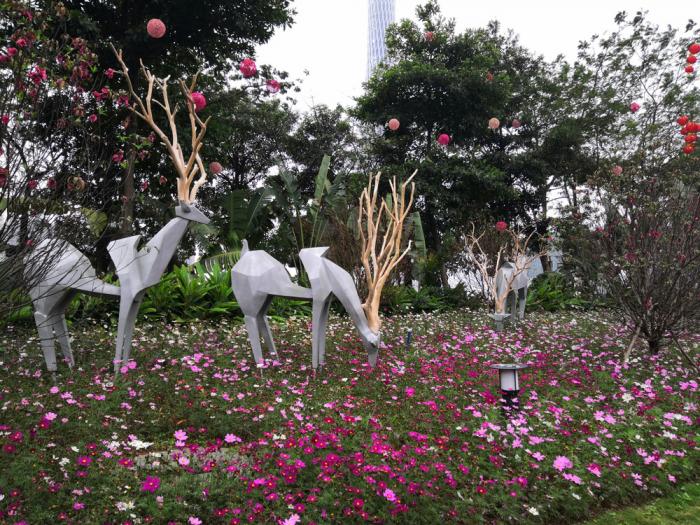 主入口有立体绿雕“开放之门”、中轴线入口有立体绿雕“幸福之门”、码头休息区有立体绿雕组景“新年快乐”。中轴线星光大道上200米“桔阵”也是一大亮点,通过鲤鱼圆盘状的影壁、桔子组景、动物绿雕等元素打造寓意“年年有余”“步步高”的吉祥迎春之路。