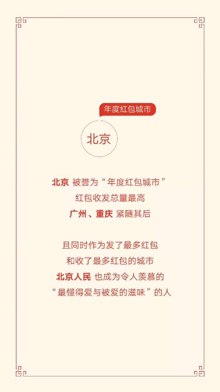 除夕到初五共有8.23亿人次收发微信红包,同比增长7.12%。其中广东省的收红包次数和发红包次数均排名第一。北京、广州、重庆成为红包收发总量TOP3城市。