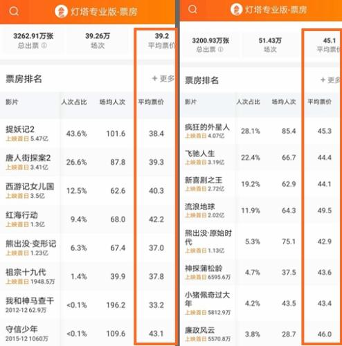 2019年春节期间,电影在线购票更加普及,购票线上化率达到了89.2%。但灯塔专业版数据显示,今年大年初一,几部大热的电影的平均票价都在44元以上,比去年同期的电影均价多出5.9元。
