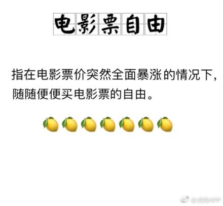 于是,除了车厘子自由、奶茶自由,网友们还在春节期间开发出了新词儿――“电影票自由”,指在电影票价突然全面暴涨的情况下,随随便便买电影票的自由。