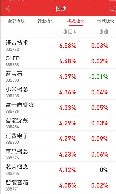 板块行业方面,今日OLED概念、5G概念股以及券商板块领涨,科技巨头股暴动,OLED概