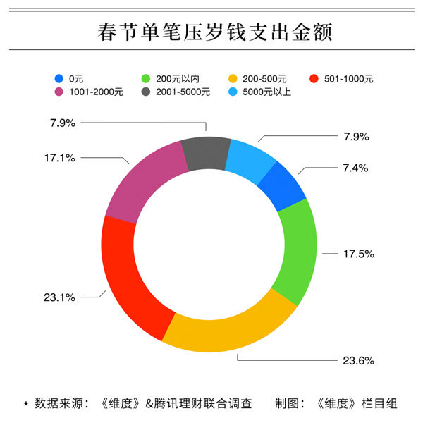 有些人甚至将发压岁钱当成了摆场面的机会,生怕比别人发的少了丢面子。《维度》调查显示,生活在农村地区的人群中也有2成发出的单笔压岁钱超过1000元,而生活在北上广深的人群中这一比例也不过3成。