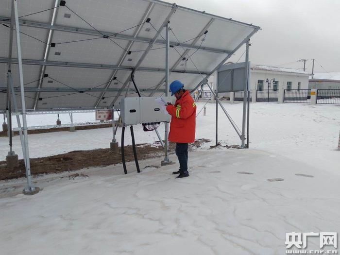 青海送变电工程公司员工春节期间巡视玛多4..4兆瓦光伏扶贫电站(央广网发 熊增亮 摄)