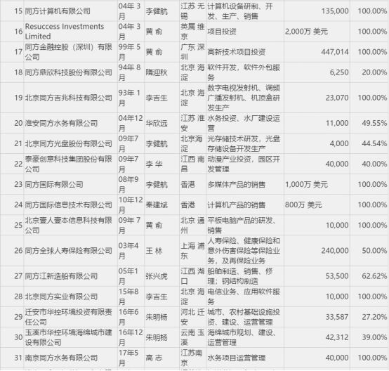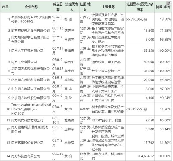 下图是,同方股份公司持有的重要一级控参股子公司基本情况名单: