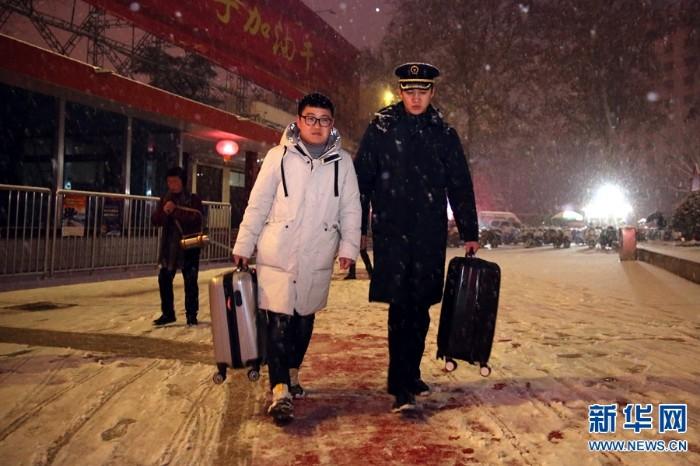客流出行高峰遇到强降雪天气,郑州局管内各大火车站迅速启动应急预案,组织党员服务队及时清扫积雪,铺设地毯、防滑草垫和安全提示牌等,加密进站口、售票厅、站台、地道、天桥、台阶、电梯等客流密集区域防滑防护措施,增加站台盲道、白色安全线等湿滑位置广播提示和人工引导,确保旅客安全乘降。